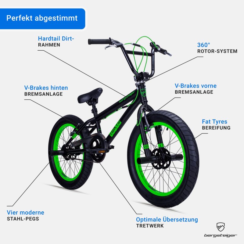 Dank der besonders dicken Fat Tyre Bereifung dieses BMX-Fahrrads können Sie maximalen Fahrspaß genießen.