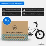 Gebremst wird mit einer sicheren Rücktrittbremse und einer vorderen V-Bremse. Der lässig aussehende BMX-Lenker verfügt über eine ergonomisch durchdachte Konstruktion, die perfekt auf die Physis von Kindern abgestimmt ist. Der montierte Kettenschutz verhindert Verschmutzung von Kleidung oder Einklemmen zwischen Kette und Zahnkranz. Zudem besitzt der Fahrradsattel eine für Kinder perfekte Ergonomie.